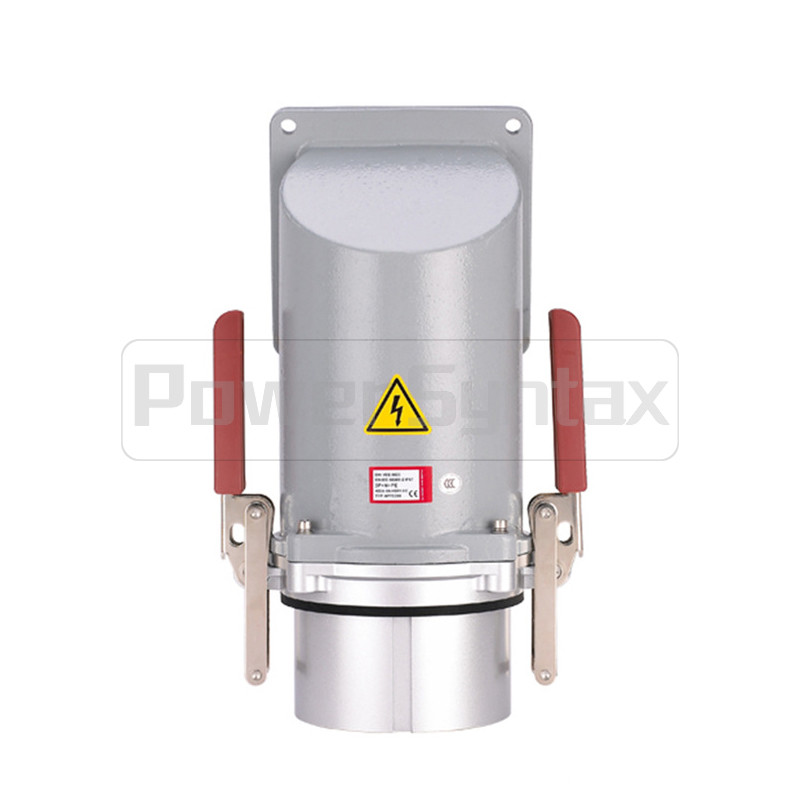 PowerSyntax 5P 400A IP67 415V Heavy Duty High Current Wall Mounted Angled Industrial Plug Dock Receptacle Deel nr. 75336
