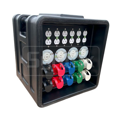 Deze driefasige 400 ampere draagbare stopcontact buiten is speciaal ontworpen voor stage tijdelijke powerbox in Amerika.en de uitgaande 400A connectoren set van 5 is een lus doorDe dozen zijn gemaakt van PE en IP67 waterdicht, wat perfect is voor de sportevenementen, vooral voor zwembaden.We kunnen power distro boxes op maat maken..