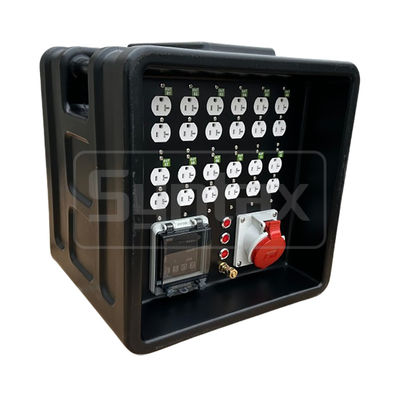 Syntax MD1 Driefase 4P 32AMP HDPE Draagbare distributiebox IP67 met 12 nummers UL Listed Nema Dual Sockets 430x380x460mm