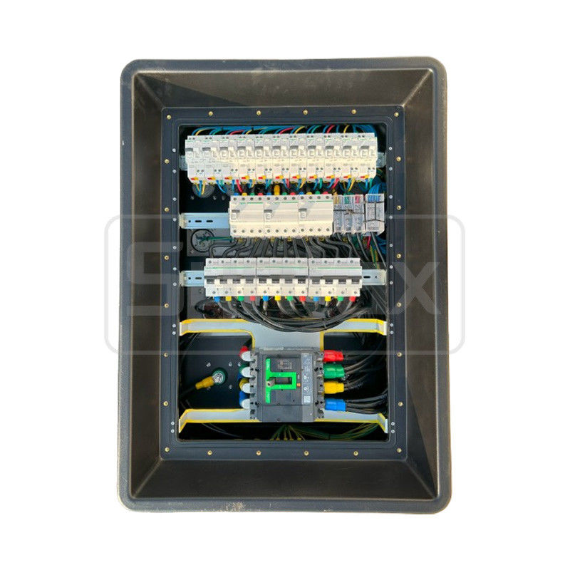 Syntax MD4 Drie fase 250EenMP IP67 waterdichte HDPE-stroomdistributie doos met Schneider breaker en PowerSyntax industriële stekker en stopcontact630x430x900 mm