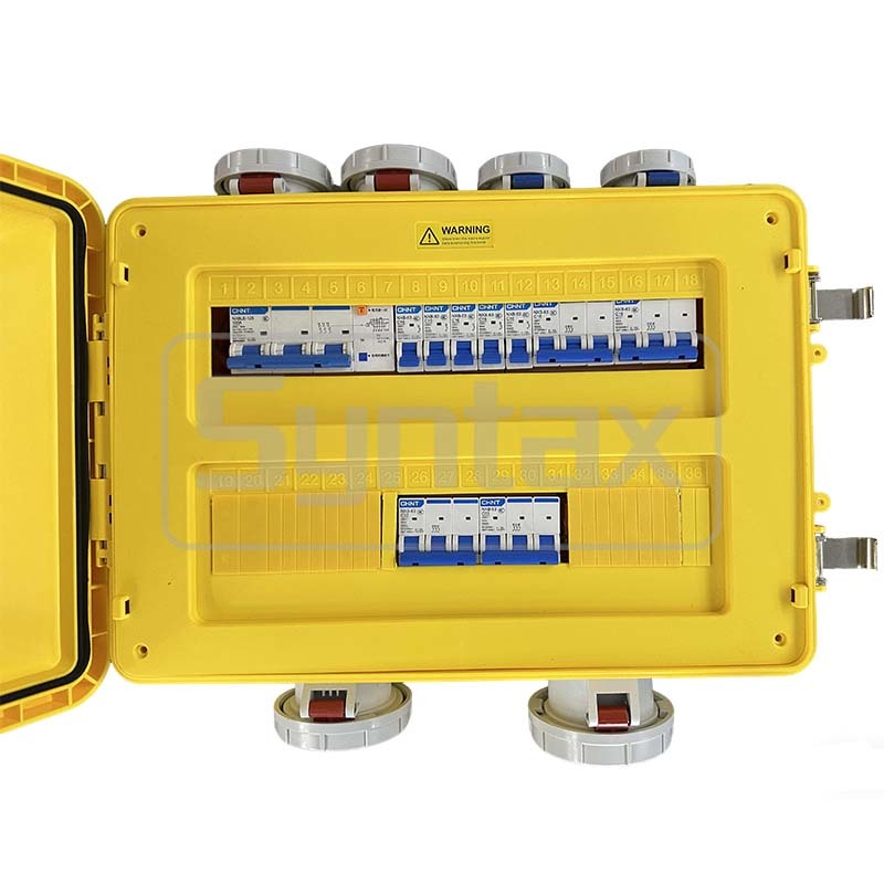 De tijdelijke stroomdistributieboxen voor gebruik bij live evenementen, sportevenementen, film en tv zijn 125A, 400VAC, 3P + N + E IP67 waterdicht.met een vermogen van meer dan 50 W,De uitgaande stopcontacten zijn 1 nr. 5P 63A 400v IP67 Panel Mounted Straight type stopcontact, beschermd door 1 nr. 3P 63A MCB, en 1 nr. 5P 32A 400v IP67 Panel Mounted Straight type stopcontact,beschermd door 1 nr. 3P 32A MCB, en 1 nr. 5P 16A 400v IP67 Panel Mounted Straight type socket, beschermd door 1 nr. 3P 16A MCB, en 2 nr. 3P 32A 220v IP67 Panel Mounted Straight type socket, beschermd door 2 nr. 1P 16A MCB,en 3 nr. 2P+E 220v 16A enkelfasige Schuko-sluiting (Duits type)De dozen zijn gemaakt van PC en IP67 waterdicht, wat perfect is voor evenementen, vooral voor het podium.