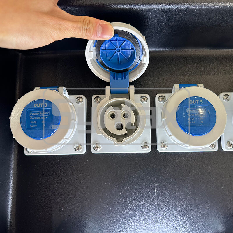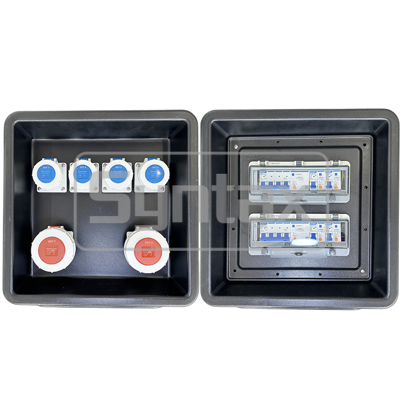 | Uitgaand circuit 1 | 2 × 5P 32A 400V IP67 op paneel gemonteerde stopcontacten, beschermd door 2 × 4P 32A 30mA aardlekschakelaars |