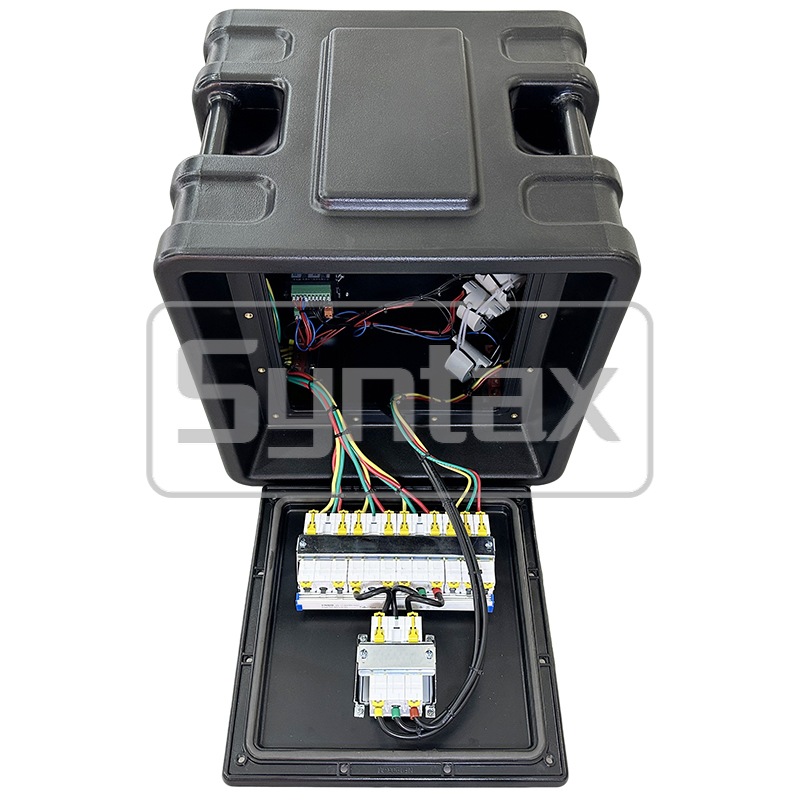 | Componentmerken | Verdeelkast van Syntax; Industriële stekkers & stopcontacten van Weipu; Automaten van Schneider |
